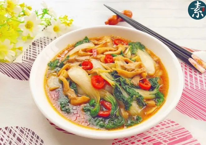奶白菜、平菇、红椒、姜片