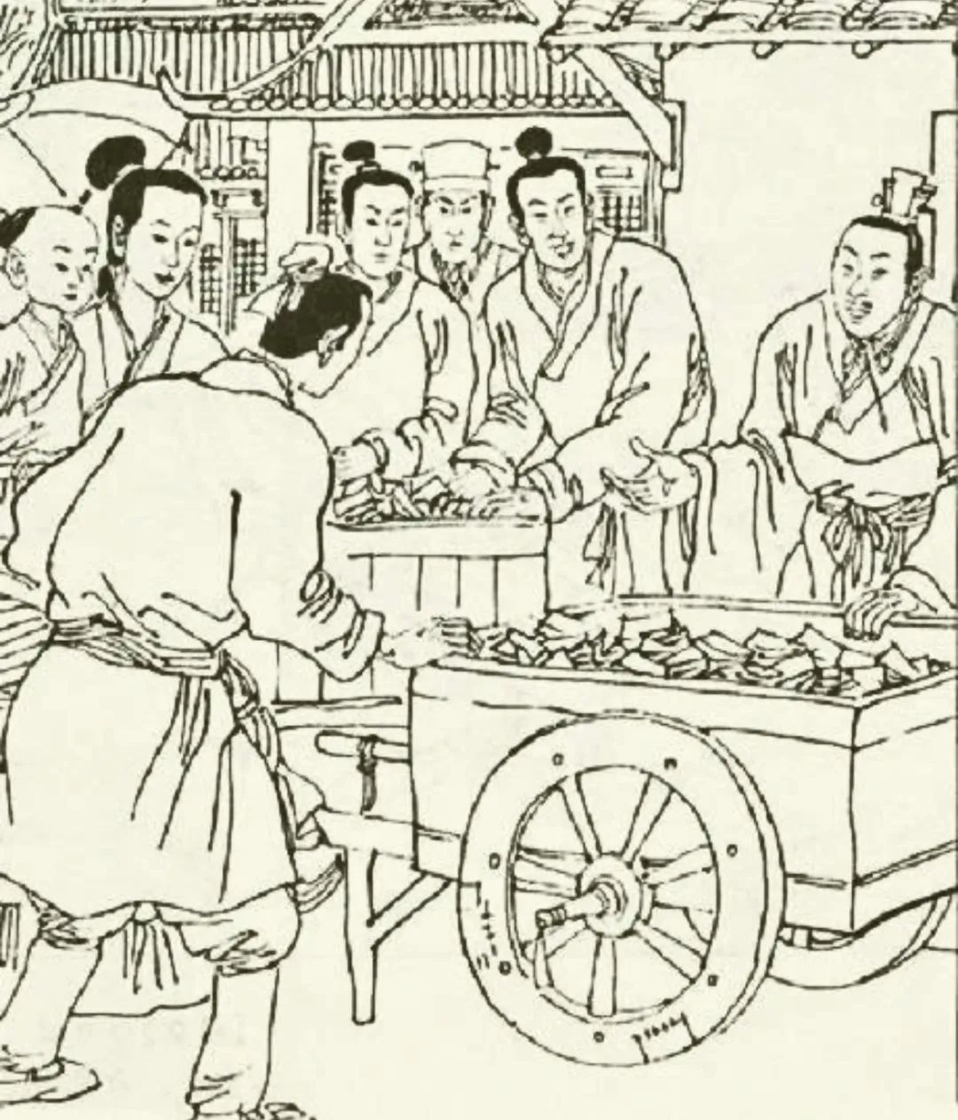他推车到集市上去卖,因为沉香价钱太高,卖了好多天都无人问津,心中很是苦恼。