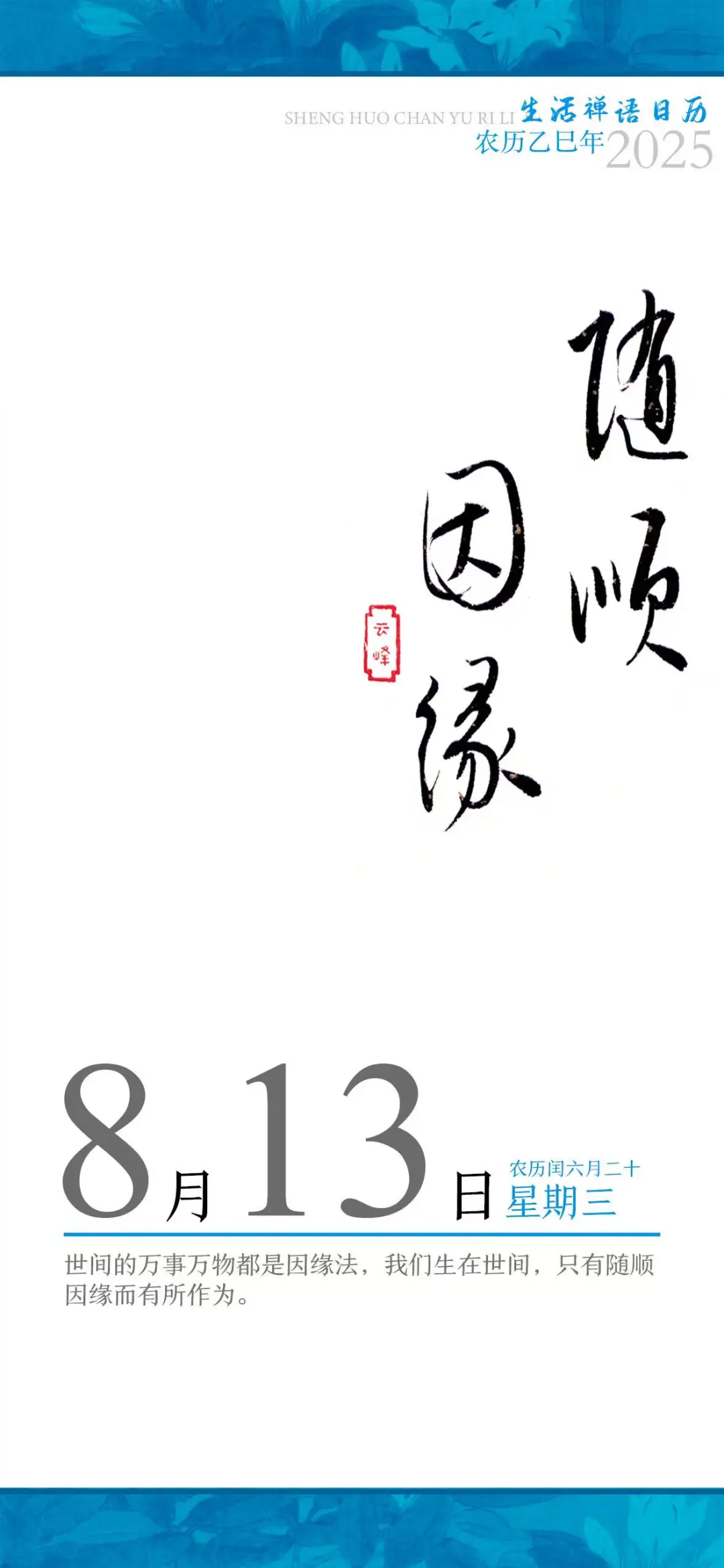 世间的万事万物都是因缘法,我们生在世间,只有随顺因缘而有所作为。