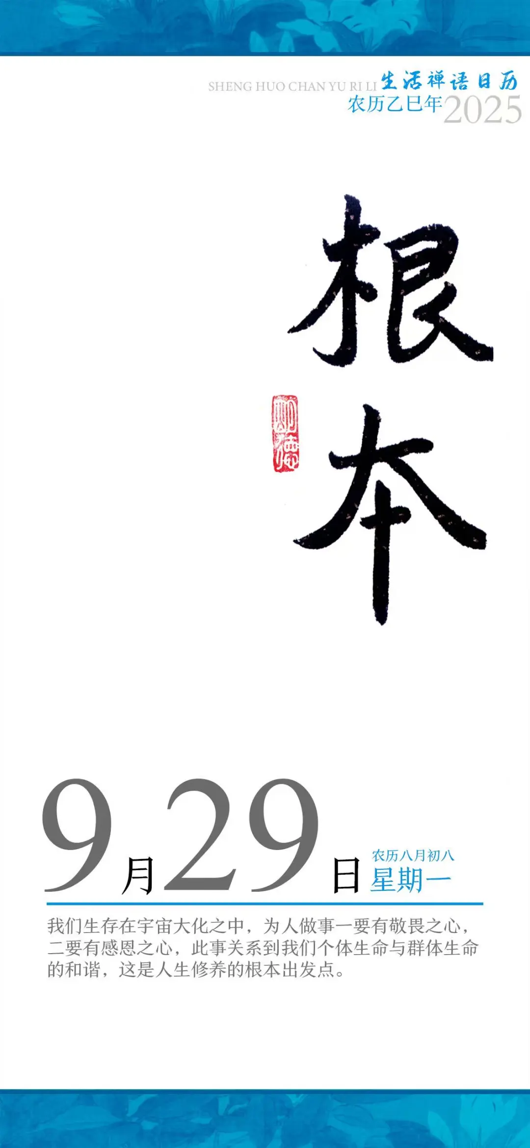 我们生存在宇宙大化之中,为人做事一要有敬畏之心,二要有感恩之心,此事关系到我们个体生命与群体生命的和谐,这是人生修养的根本出发点。