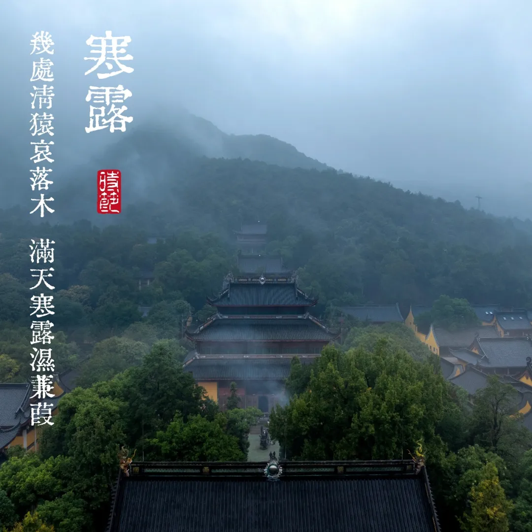 袅袅凉风动,凄凄寒露零 白乐天的这句诗点明了寒露的主题 这是一场从凉爽向萧瑟的过渡 作为一年中仅有的两个与露水相关的节气 白露与寒露在时间上虽然只隔一月 但在人们体感上却相差了一个季节 相较于白露时节的白天夏热,早晚秋凉 寒露的早晚已能感受到些许寒意了 空气里凉凉的桂花香和夜晚寥落的虫鸣声 连同碧云天,黄叶地,大地的一切讯息 都随斑斓的落叶齐齐地指向了深秋